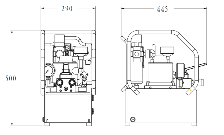 l 内置安全阀、外置可调溢流阀